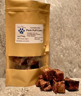 Made from 100% Australian Pork lung, Pork Puff Cubes are light and low in fat making them a great quick snack and also perfect for training.
